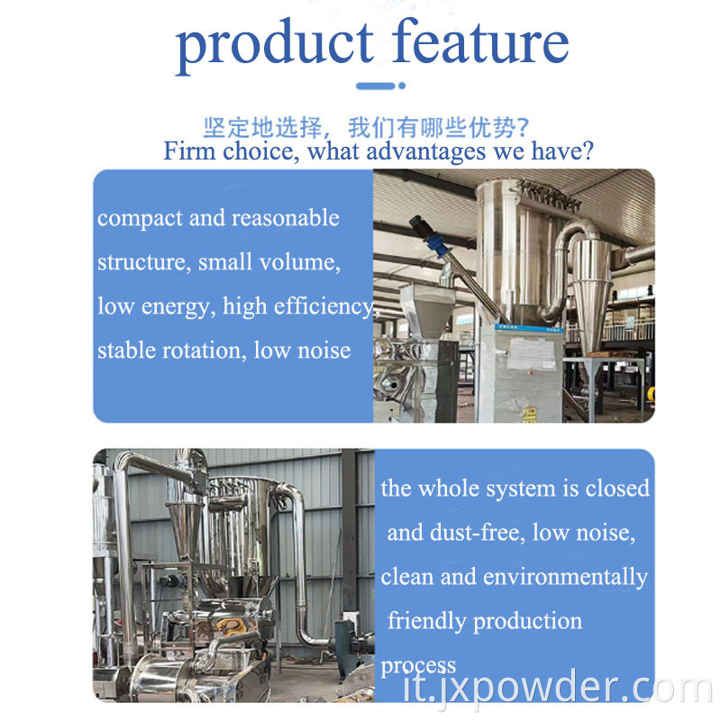 La macchina ha anche una funzione di auto-raffreddamento, particolarmente attiva di elaborazione a mano abbondante attivo, uso del materiale fibroso e medicina del cuore chimico, condimento, vernice, pigmento, colorante, mangime, plastica, nero, catalizzatore, idrossido di alluminio, allumina, talco, mica , Grafite, agente di schiuma di CA, coke di petrolio, pesticidi, colorante, rivestimento, ritardante di fiamma, nero carbone, materiali elettronici, gomma, metallurgia, ceramiche, alimenti, materiali da costruzione, minerale, cemento, materiali refrattari, minerali inorganici, cereali e altri ideali Attrezzatura per la frantumazione.