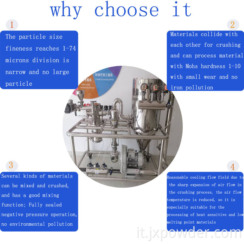 ● I materiali si scontrano tra loro per la frantumazione, possono elaborare la durezza MOHS 1-10 Materiali, l'usura è piccola, il prodotto senza inquinamento da ferro;