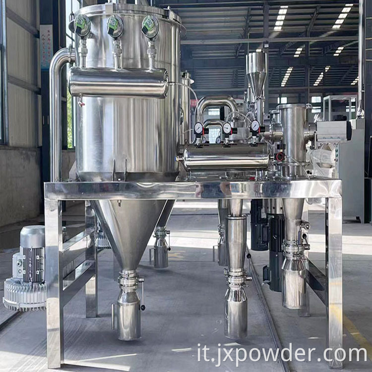 ● Campo di flusso di raffreddamento ragionevole, a causa della forte espansione del flusso d'aria nel processo di frantumazione, la temperatura del flusso d'aria è ridotta, quindi è particolarmente adatto per la lavorazione di materiali a basso punto di fusione sensibili al calore;
