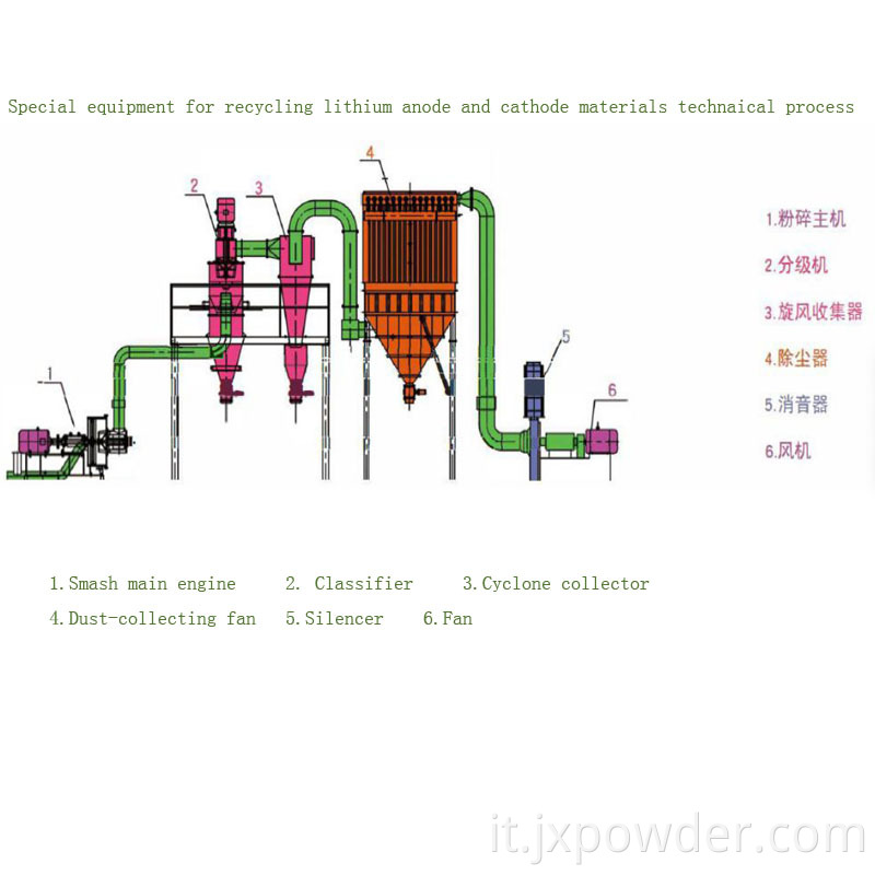 Attrezzatura per il riciclaggio di anodo di litio e materiali catodici